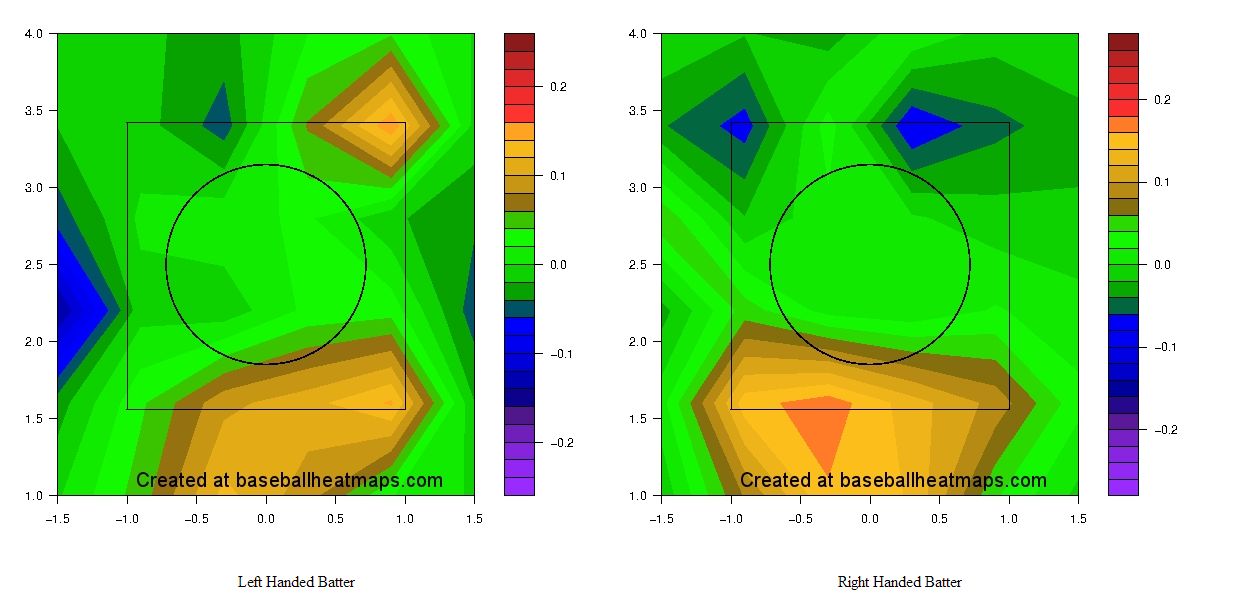 - I considered using projected RA9 instead of actual RA9, but after playing around with the historical Marcel projections at Baseball Heat Maps, I didn’t see any meaningful differences on aggregate.